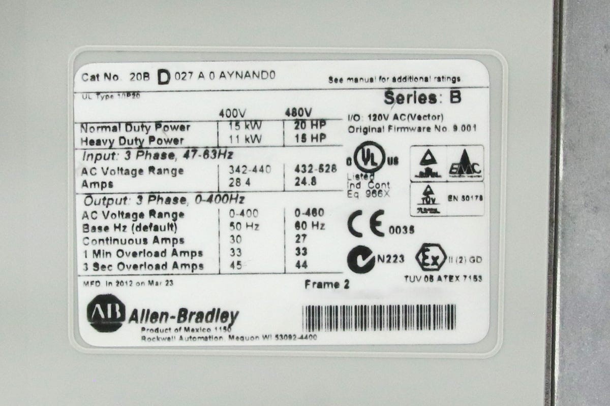 POWERFLEX 700 AC DRIVE 480VAC/3PH/27A/20HP, SER B